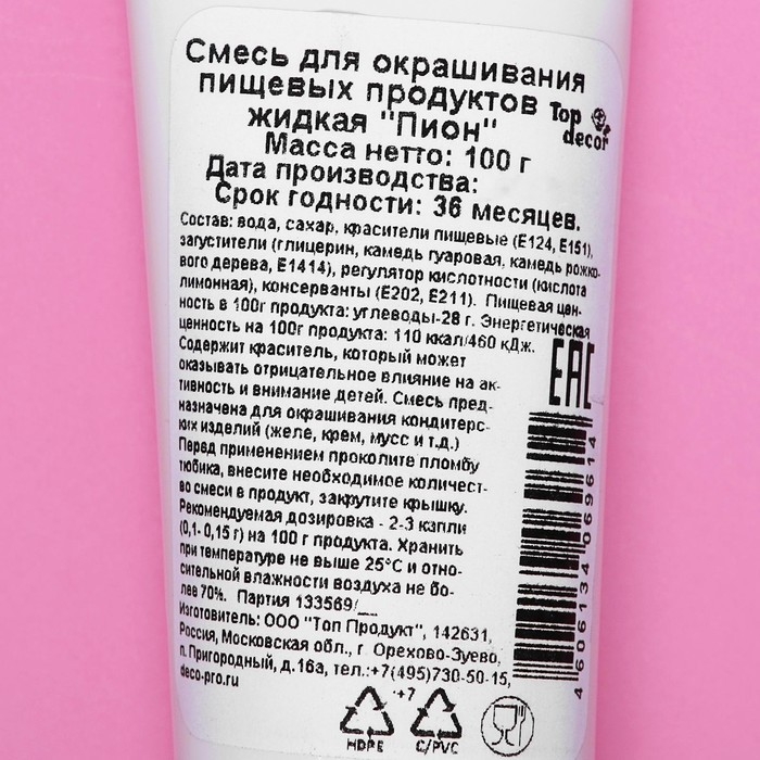 Пищевой краситель Top Decor гелевый «Пион», 100 г