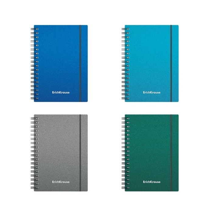 Тетрадь А6 на спирали, 80 листов в клетку, ErichKrause Ice Metallic, пластиковая обложка, на резинке, блок офсет 100% белизна, МИКС