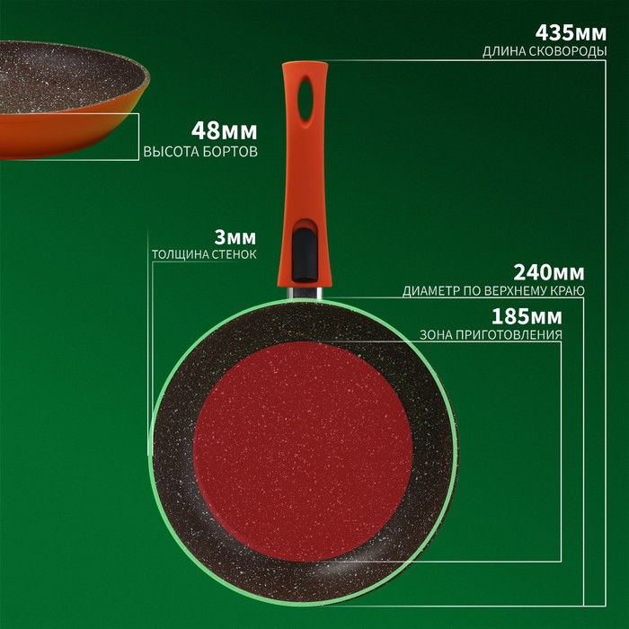 Сковорода Magistro Terra, d=24 см, съёмная ручка soft-touch, антипригарное покрытие, индукция, цвет оранжевый