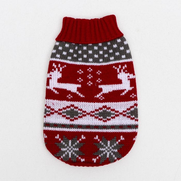 Свитер "Бегущие олени" для собак имеет уникальный новогодний дизайн, который придаст вашему питомцу особый вид во время праздников.