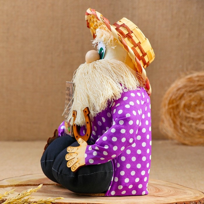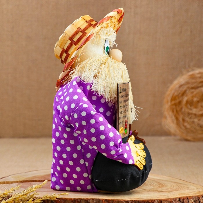 Оберег-домовой "Славуся в льняном колпаке, с ложкой и подковой", микс