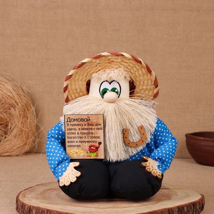 Оберег-домовой "Кузя в кепке, с метлой и подковой", 23х25х13 см МИКС