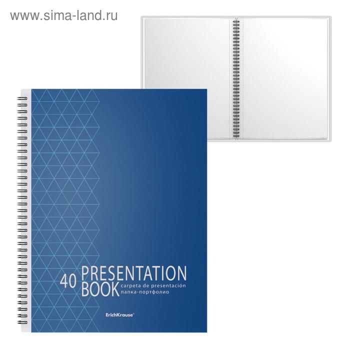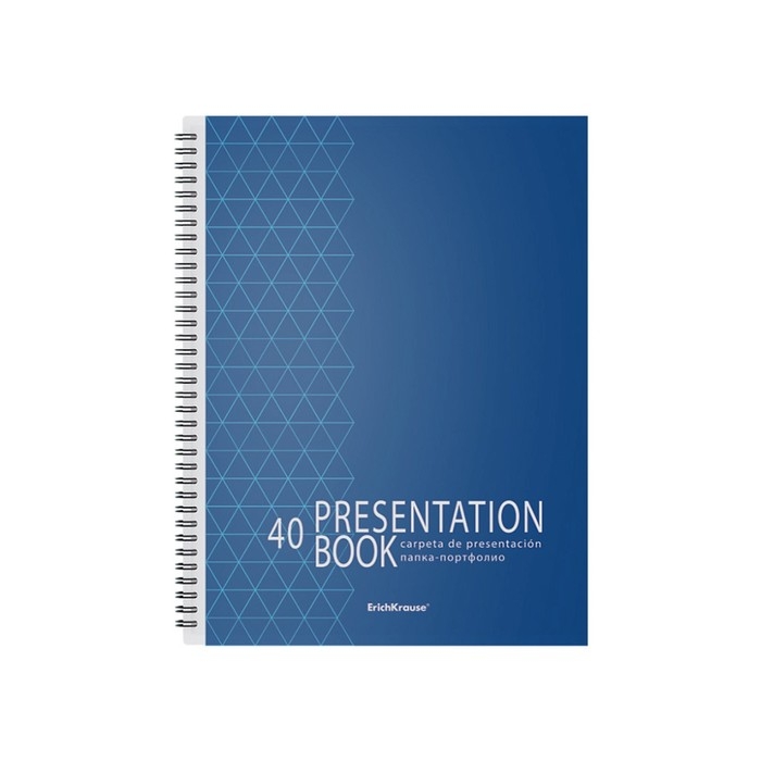 - Папка содержит 40 прозрачных листов-карманов, надежно скрепленных двойной евроспиралью.