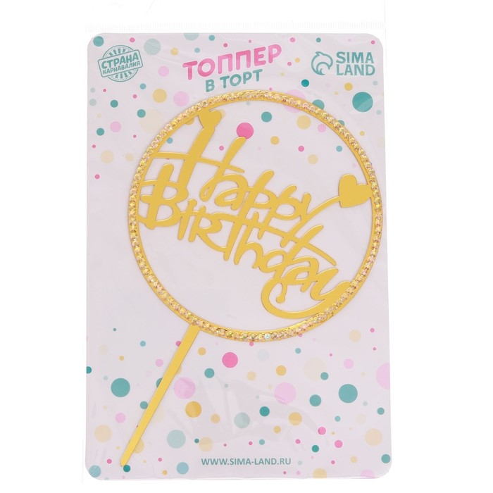 Топпер для торта «С Днём Рождения», 15×13,5 см, цвет золотой