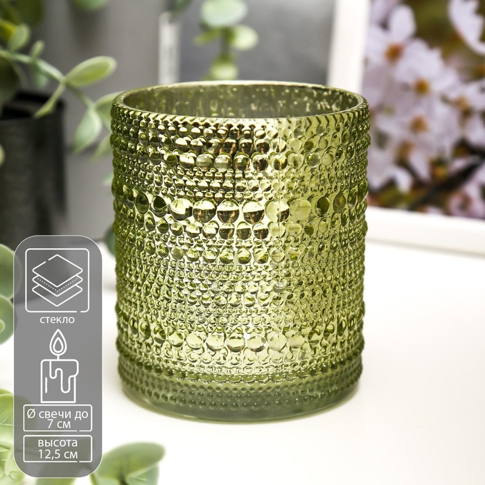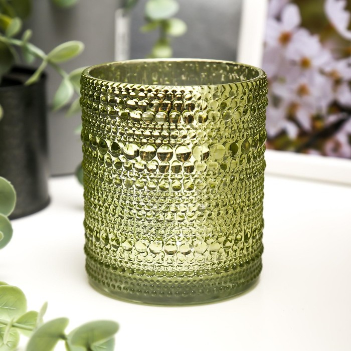 Подсвечник стекло на 1 свечу "Зеркальные пузырьки" фисташка 12,5х10х10 см