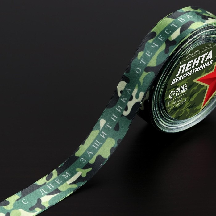 Лента атласная «С Днём защитника Отечества», 25 мм × 18 ± 1 м