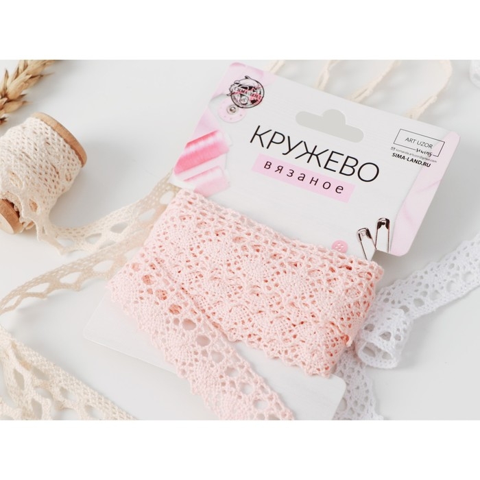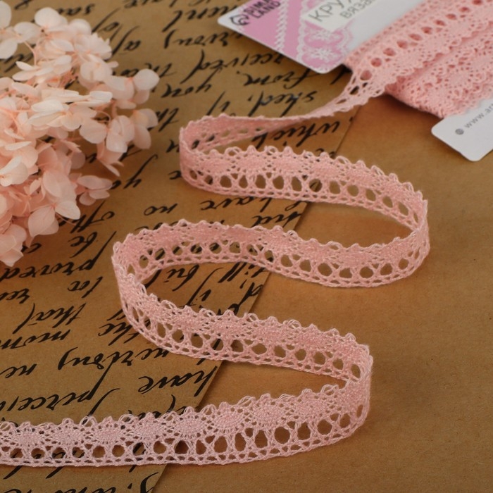 Кружево вязаное, 18 мм × 2,7 ± 0,5 м, цвет пудровый