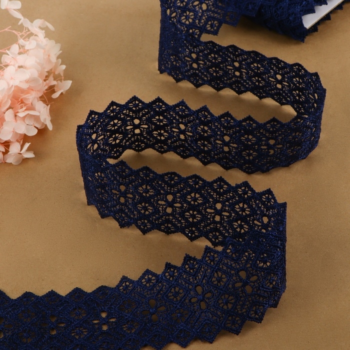Кружево гипюровое, 45 мм × 6,8 ± 0,5 м, цвет тёмно-синий