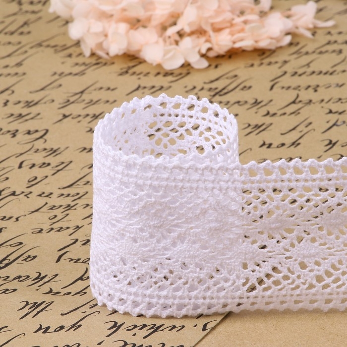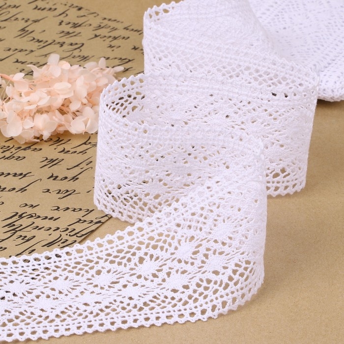 Кружево шитьё, 65 мм × 13 ± 1 м, цвет белый