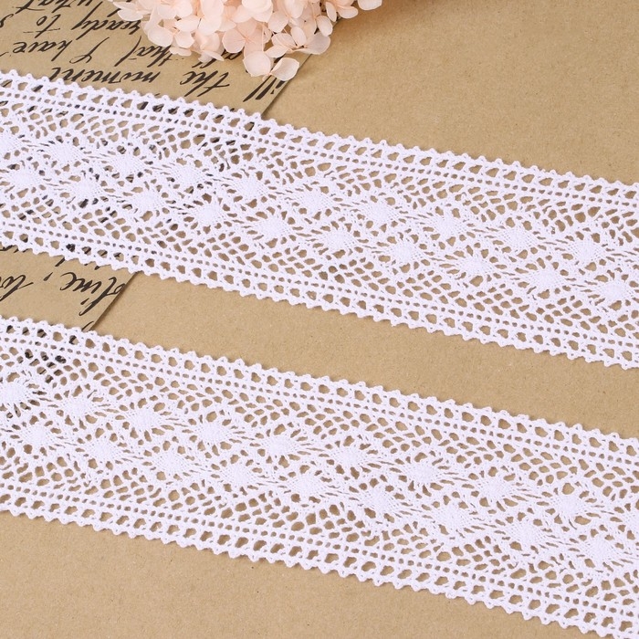 Кружево гипюровое, 55 мм × 9 ± 0,5 м, цвет белый