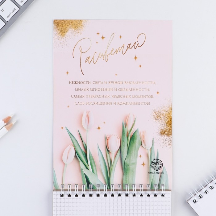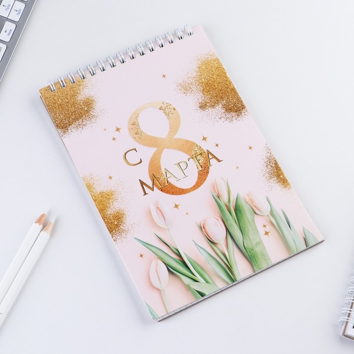 Блокнот «С 8 марта золото тюльпаны», на гребне, А5, 40 листов