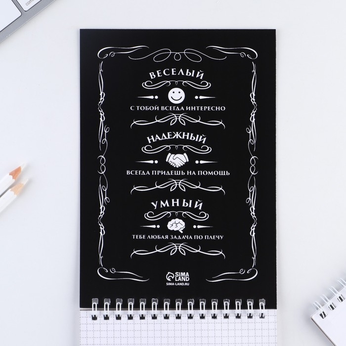 Блокнот А5 на гребне 40 листов, в клетку «100% мужчина»