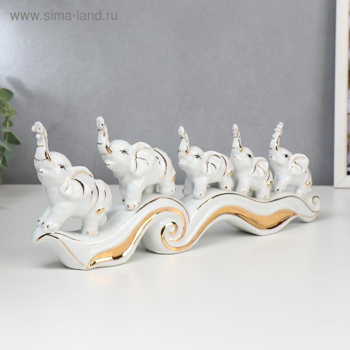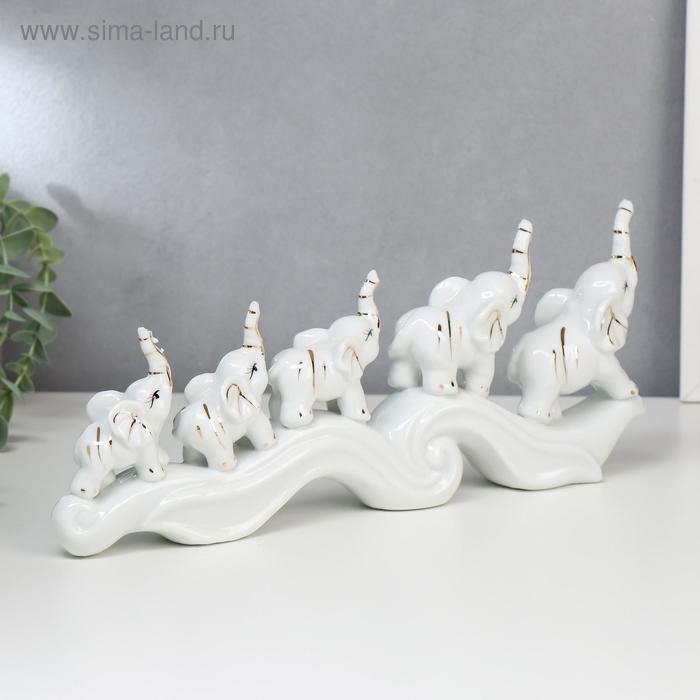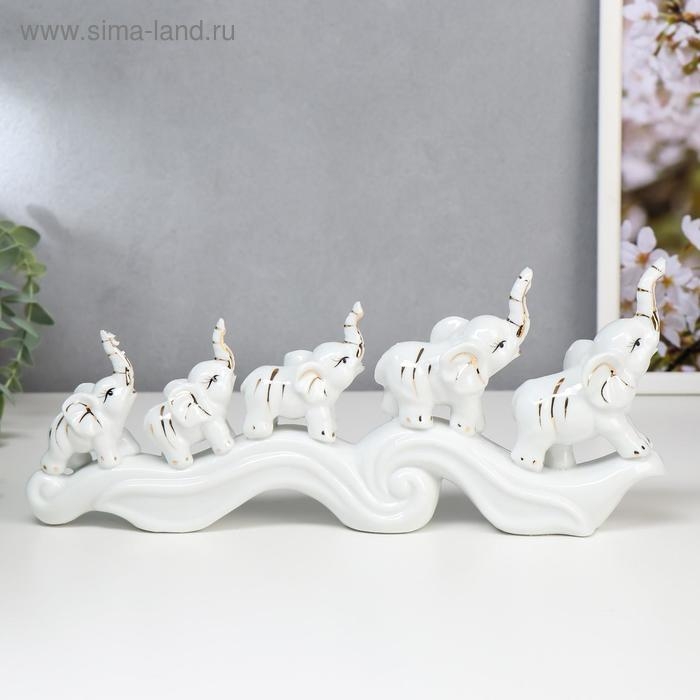 Сувенир керамика "Пять слонов на волне" 12,5х33х4,5 см