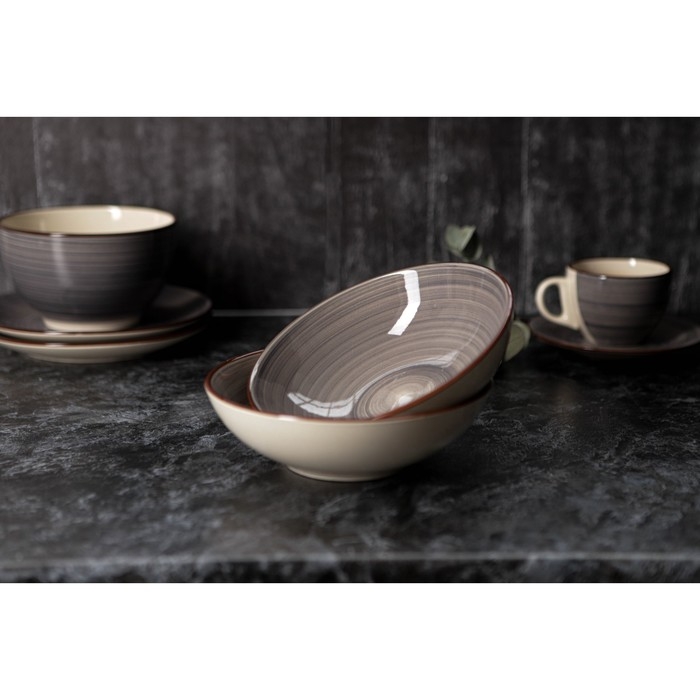 Тарелка керамическая глубокая Доляна «Морской мир», 540 мл, d=18 см, цвет коричневый