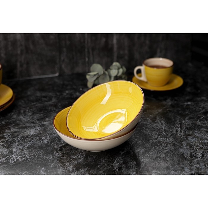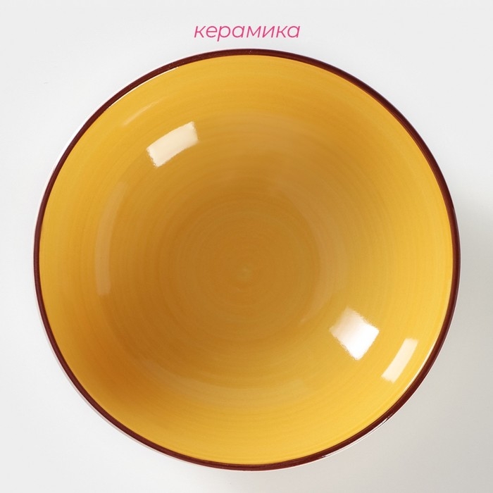 Тарелка керамическая глубокая Доляна «Морской мир», 540 мл, d=18 см, цвет жёлтый