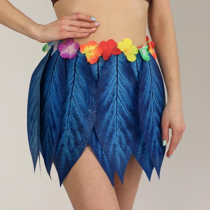 Гавайская юбка «Листики и цветочки» 36 см, цвет синий