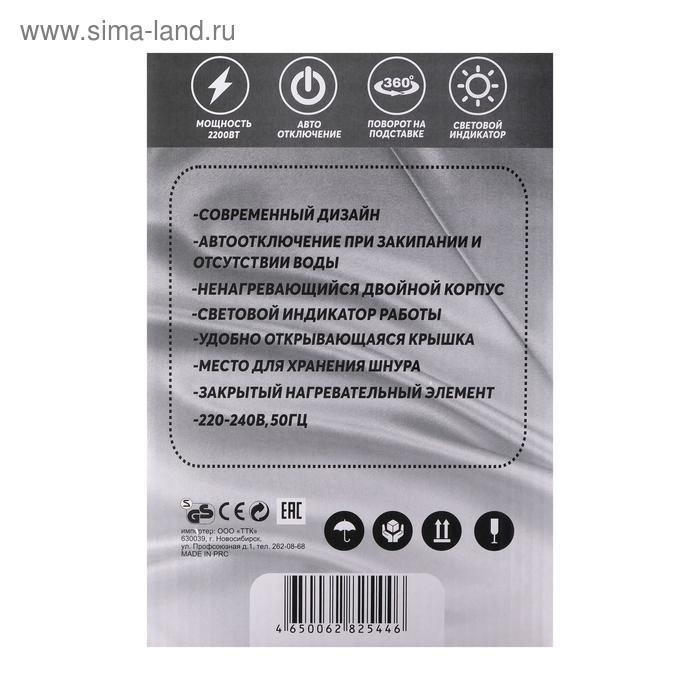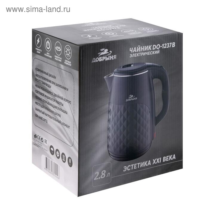Чайник электрический "Добрыня" DO-1237B, пластик, колба металл, 2.8 л, 2200 Вт, чёрный