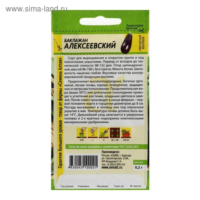 Семена баклажанов "Алексеевский" Семена Алтая раннеспелые, без горечи