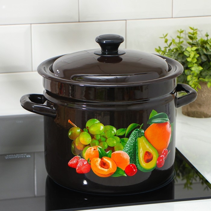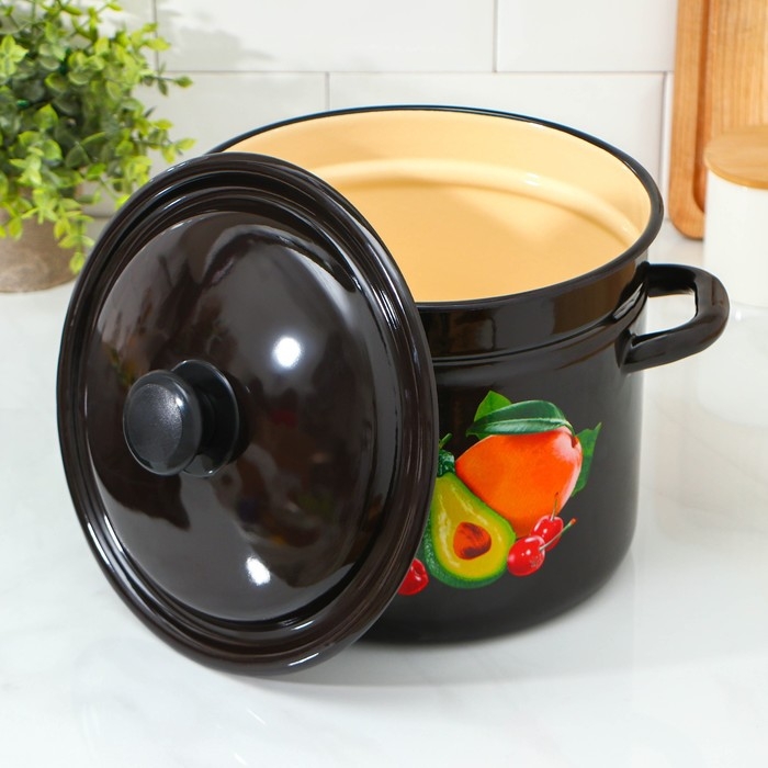 Кастрюля эмалированная цилиндрическая, 7 л, деколь МИКС, цвет коричневый