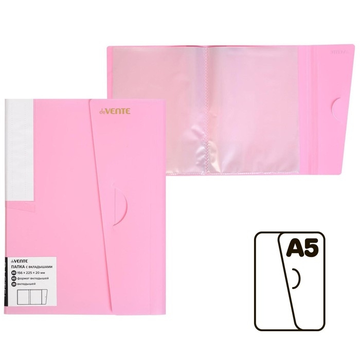 Папка 20 вкладышей А5, 500 мкм, deVENTE Pastel, песок, клапан, розовая