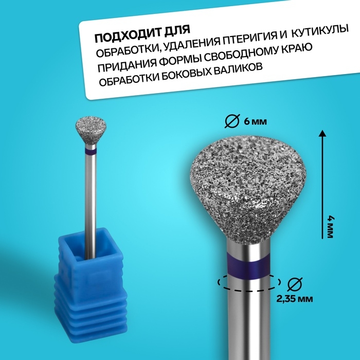 Фреза алмазная для педикюра, средняя зернистость, 6×4 мм, в пластиковом футляре