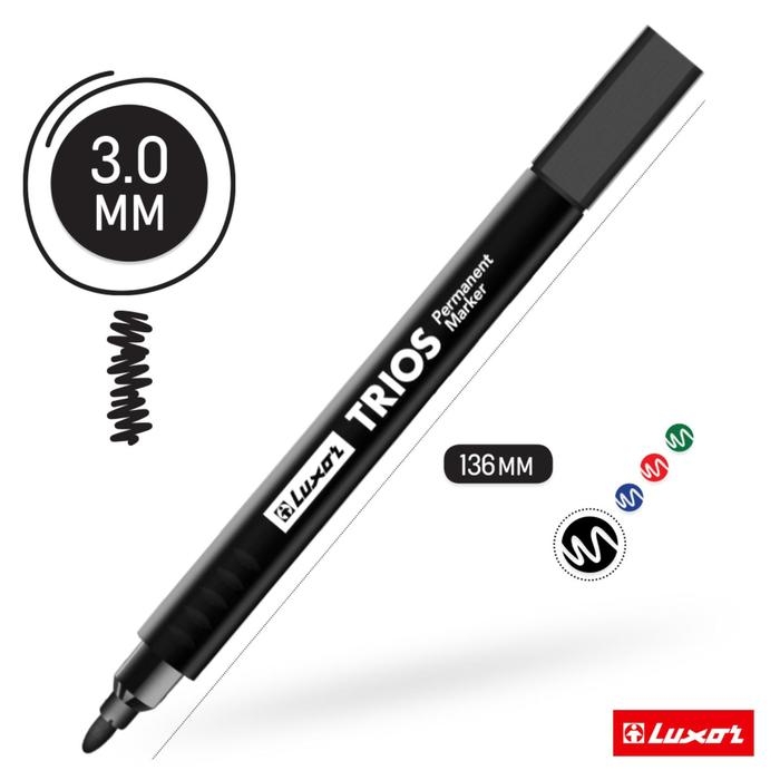 Маркер перманентный 3 мм, Luxor Trios, пулевидный, чёрный