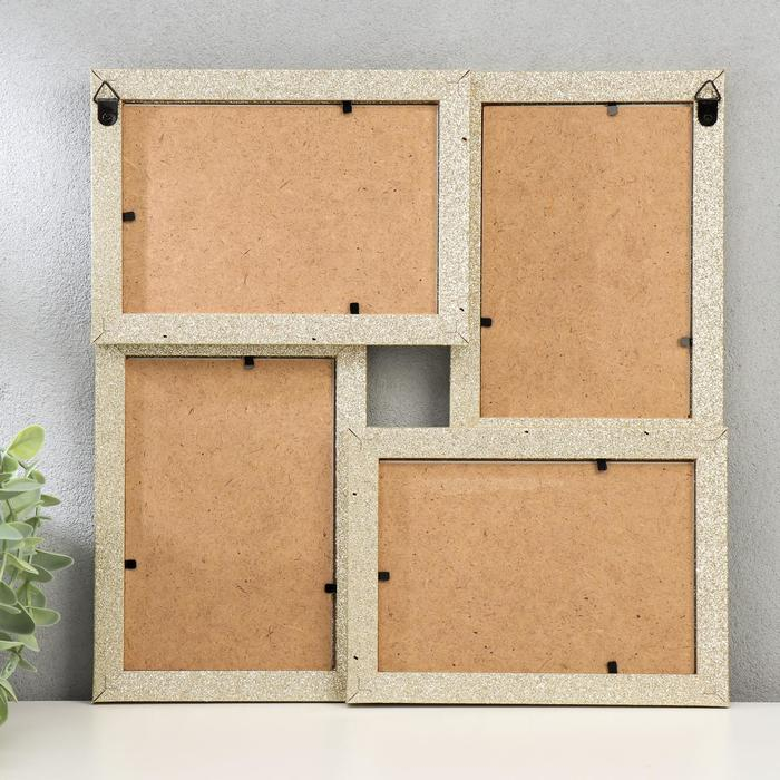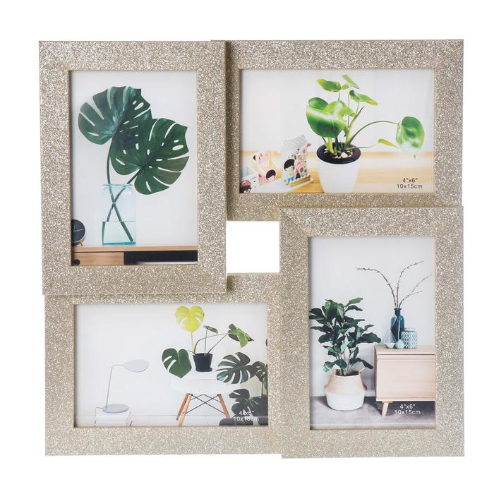 Фоторамка пластик на 4 фото 10х15 см "Блёстки" золото 30х30 см
