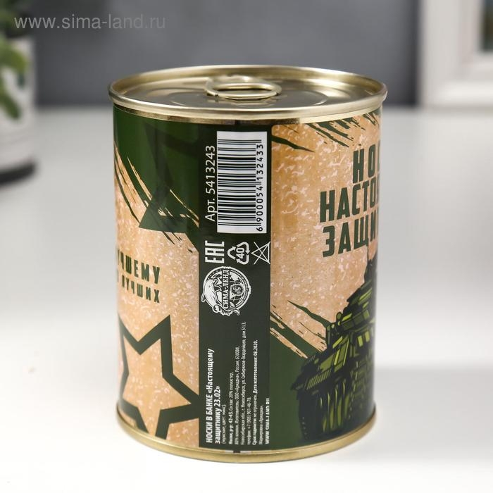 Носки в банке "Настоящему защитнику 23.02" (внутри носки мужские, цвет чёрный)
