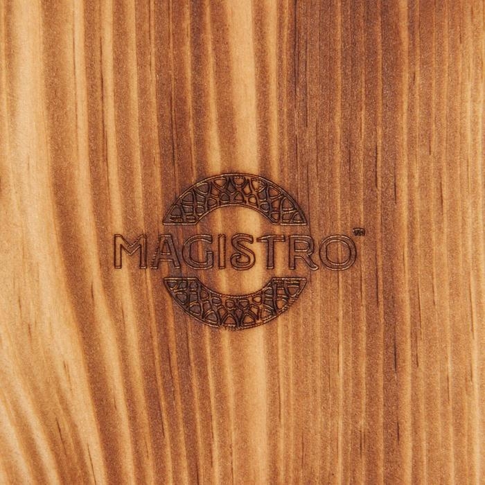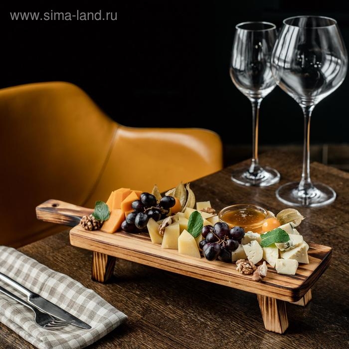Доска деревянная разделочная, для подачи на ножках из натурального кедра Mаgistrо, 38×10,5×6,5 см, с ручкой, обожжённая