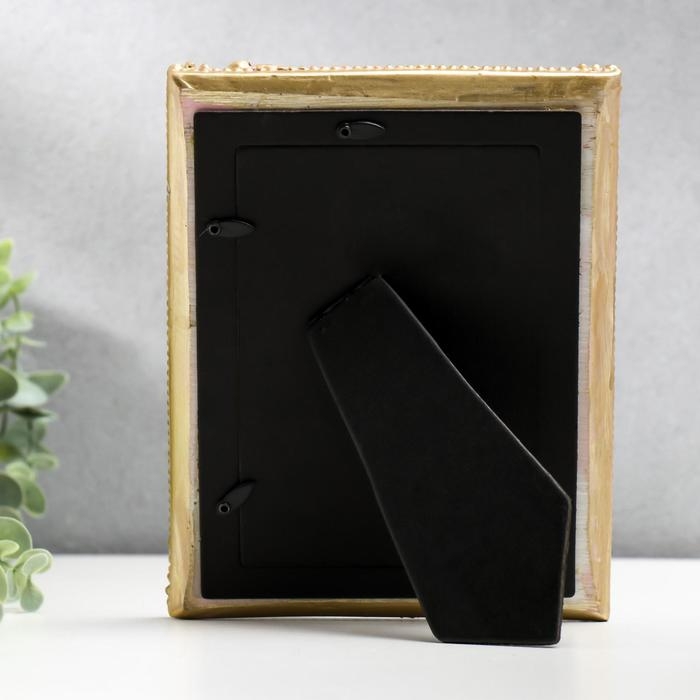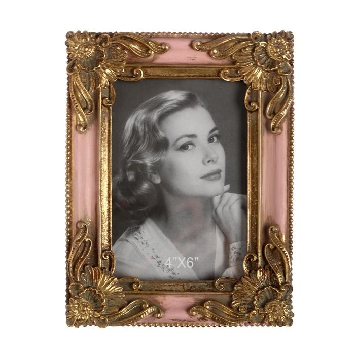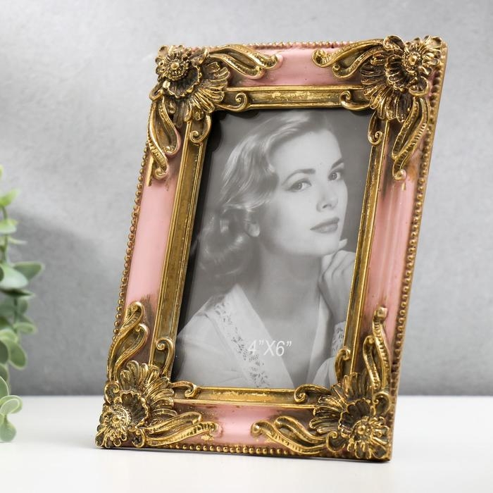 Фоторамка полистоун 10х15 см "Цветы в уголках с пышной листвой" розовая с золотом 20х15,5 см 53837