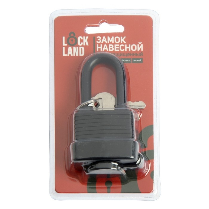 Замок навесной LOCKLAND, 40 мм, влагозащищенный, длинная дужка, 2 ключа, цвет черный