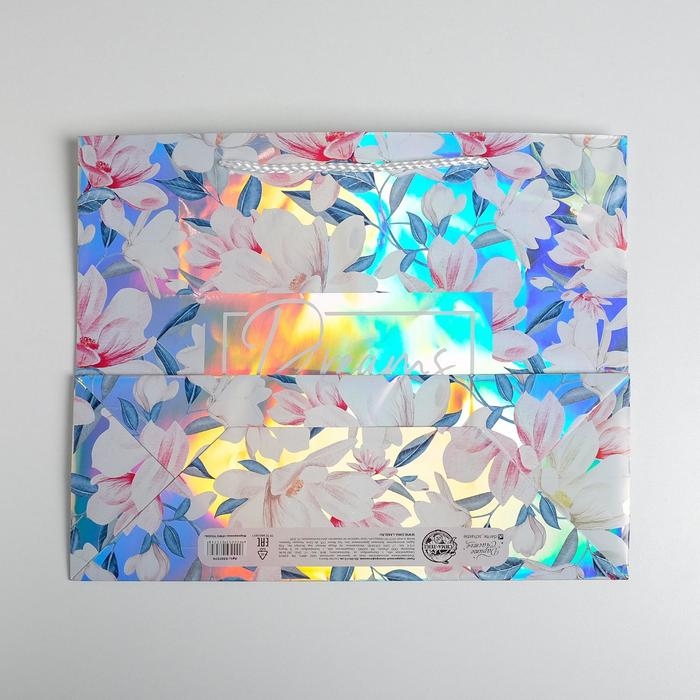 Пакет подарочный голографический, упаковка, Dreams come true, 32 х 26 х 12 см