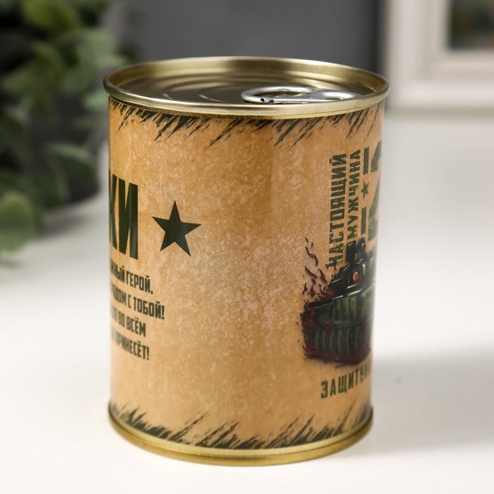 Носки в банке "Настоящий мужчина. Защитник отечества" (внутри носки мужские, цвет чёрный)