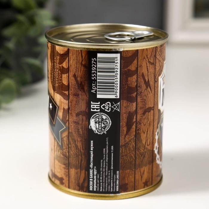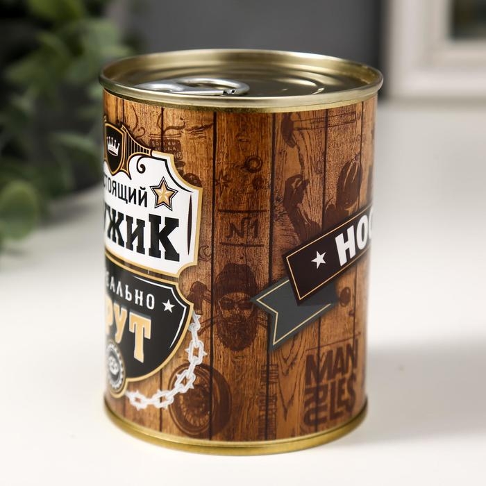 Носки в банке "Настоящий мужик-нереально крут" (внутри носки мужские, цвет чёрный)