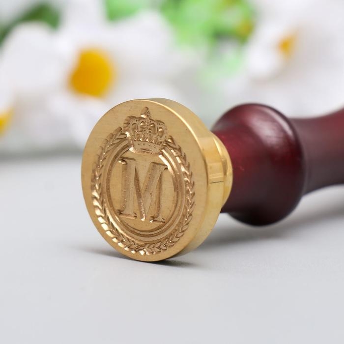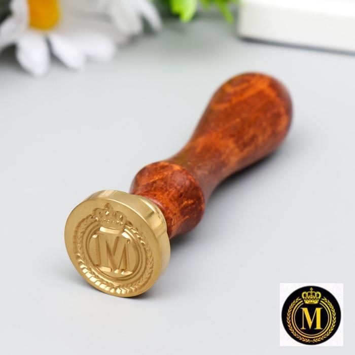 Печать для сургуча с деревянной ручкой "Корона с буквой M" 9х2,5х2,5 см