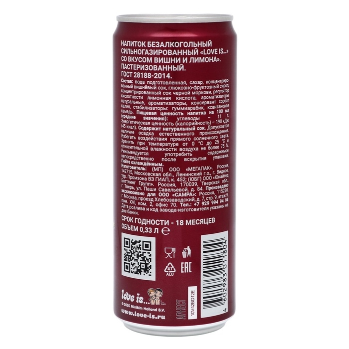 Газированный напиток со вкусом Вишня-Лимон от производителя Love is — это сладкая и ароматная вода с ярко выраженным вкусом вишни, который подчеркивают цитрусовые ноты. Газировка замечательно утоляет чувство жажды в жаркий летний день. Напиток придется по вкусу и взрослым, и детям. Маленькую банку с газировкой удобно взять с собой на учебу или работу. Пить ее лучше охлажденной.