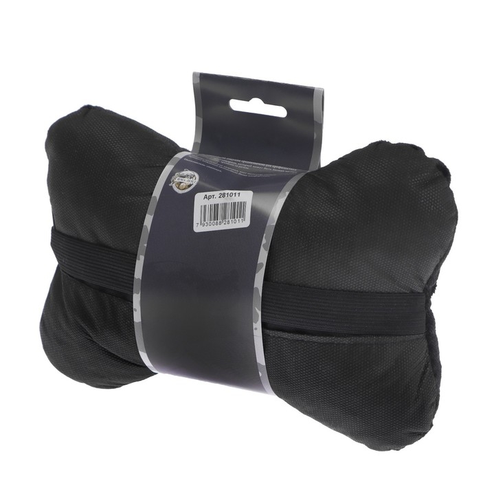Подушка автомобильная косточка, на подголовник, экокожа, чёрный, 16х24 см