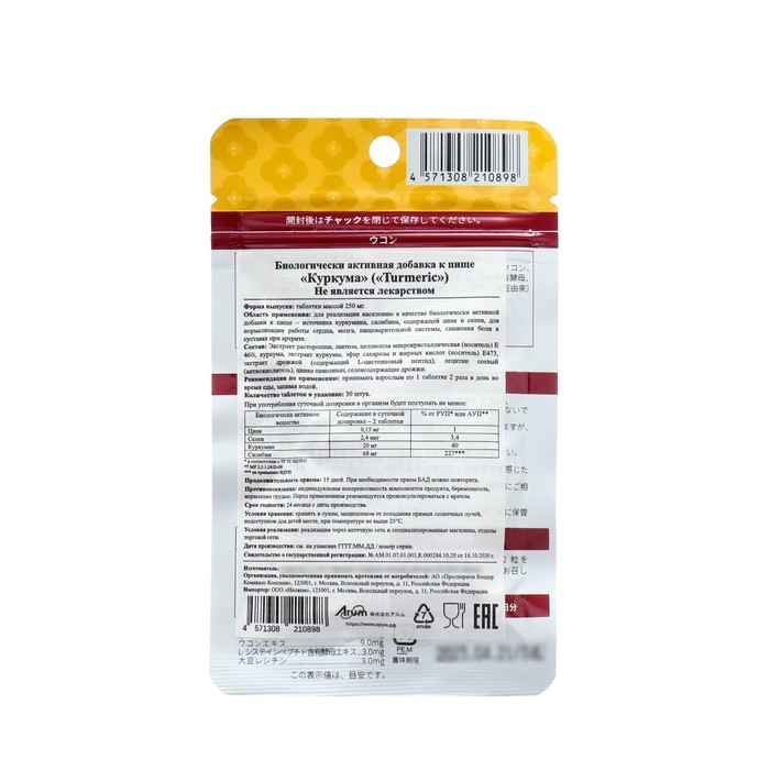 Область применения: для реализации населению в качестве биологически активной добавки к пище - источника куркумина, силибина, содержащей цинк и селен, для нормализации работы сердца, мозга, пищеварительной системы, снижения боли в суставах при артрите.