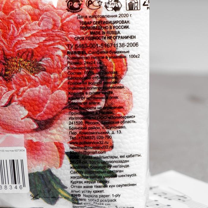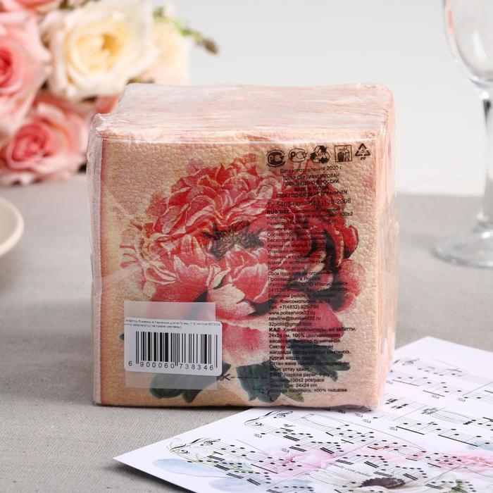 Салфетки бумажные Гармония цвета Пионы, 100 листов