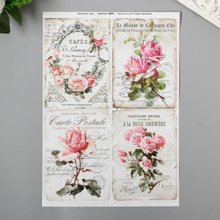 Декупажная карта "Розовые цветы" плотность 45г/м2, формат А4