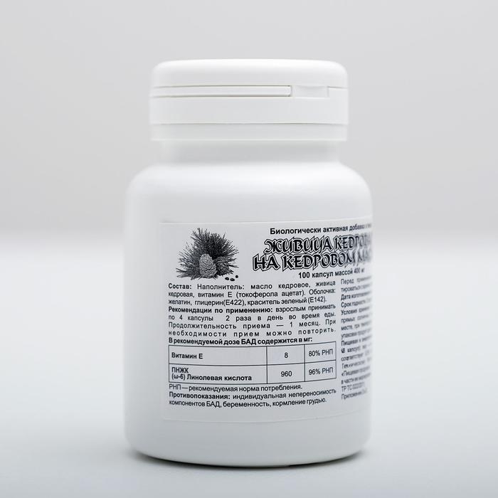Живица кедровая на кедровом масле, 100 капсул по 0,4 г