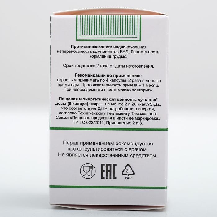 Способ применения: по 4 капсулы 2 раза в день во время еды.