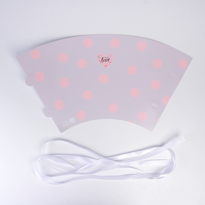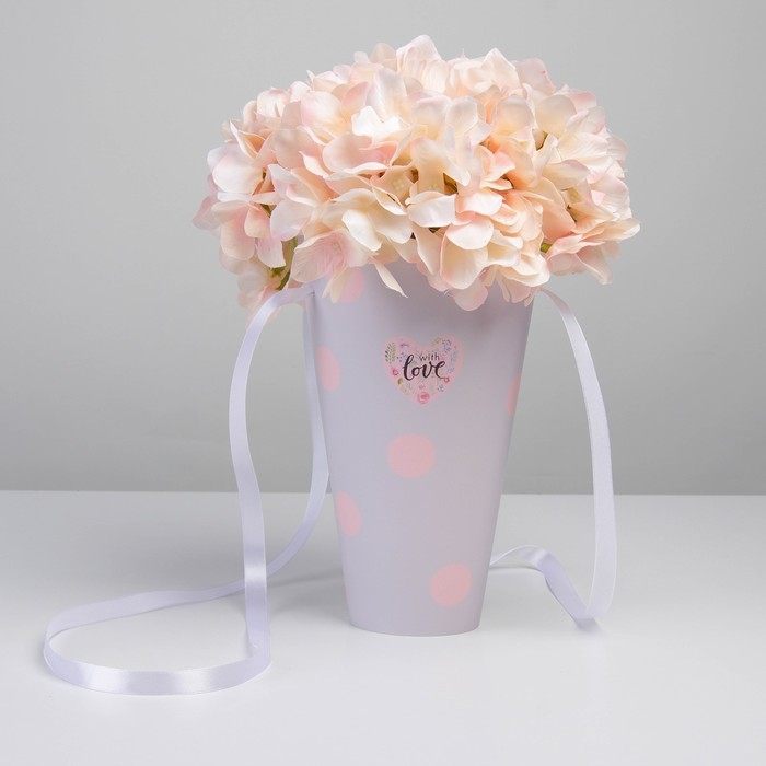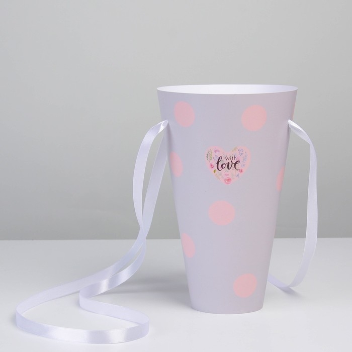 Переноска для цветов круглая на лентах «With love», 15 × 23.3 × 7.5 см, Ø 15 см