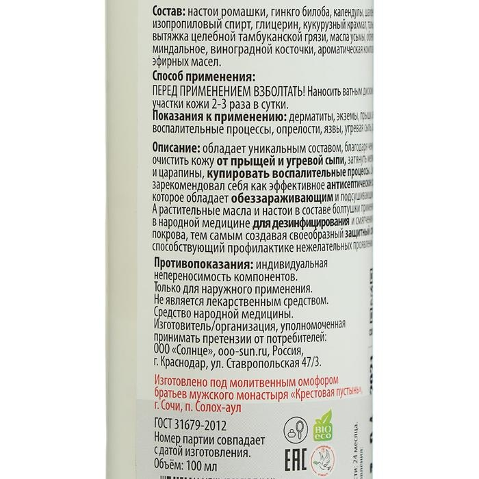 Монастырская болтушка с цинком от прыщей, 100 мл