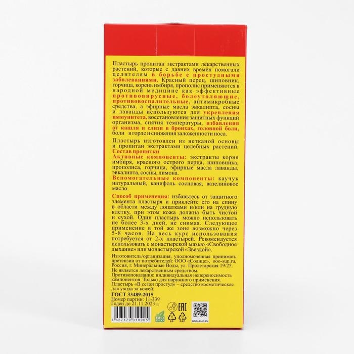 Пластырь монастырский в сезон простуд, 2 шт.