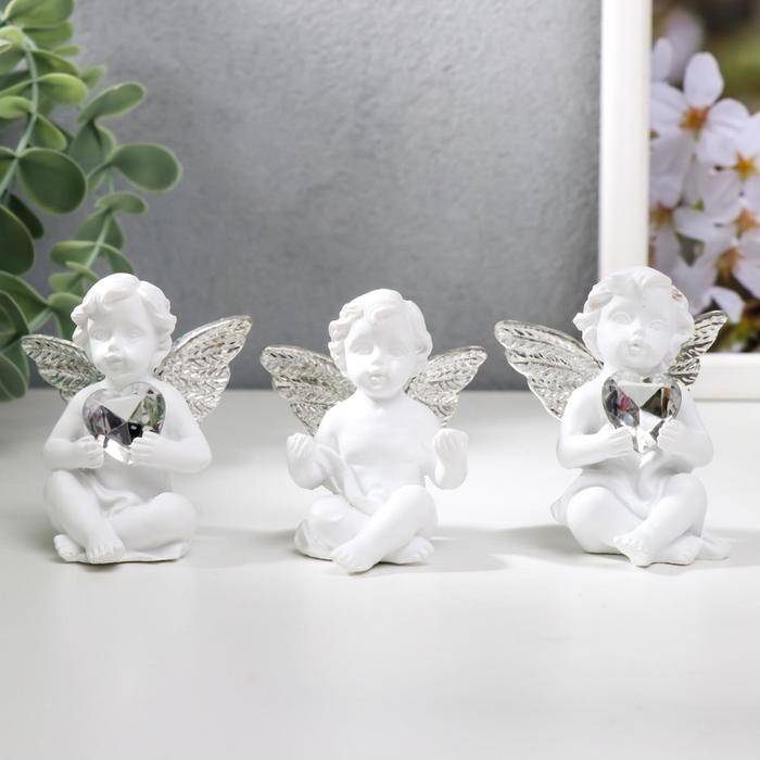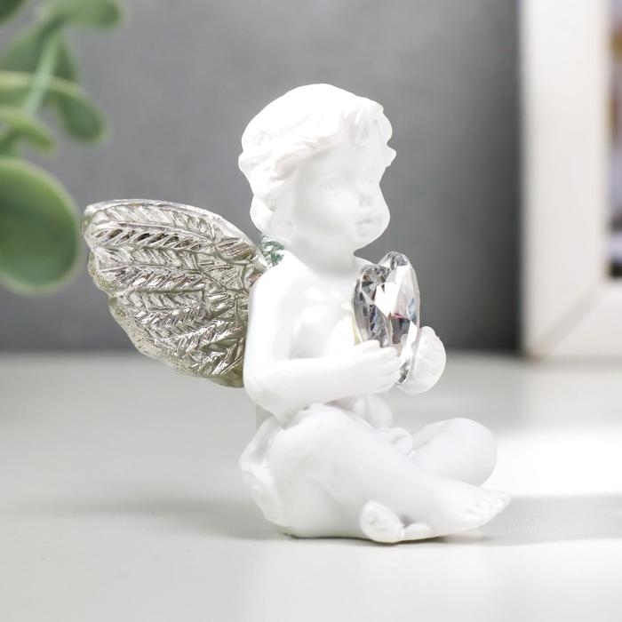 Сувенир полистоун "Белоснежный ангел с хрустальным сердцем" МИКС 5,5х4,7х3,5 см