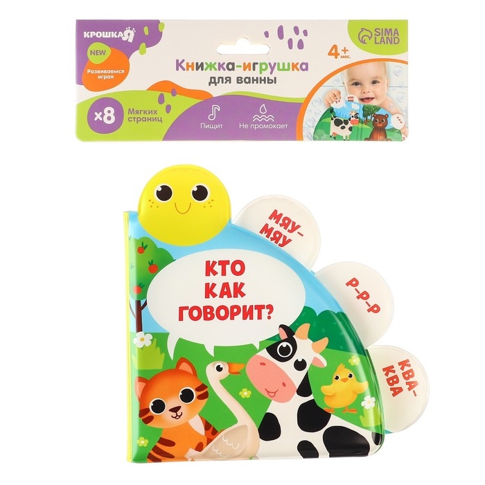 Книжка - игрушка для ванны «Кто как говорит?», с окошками, Крошка Я