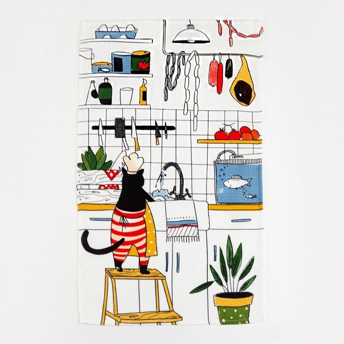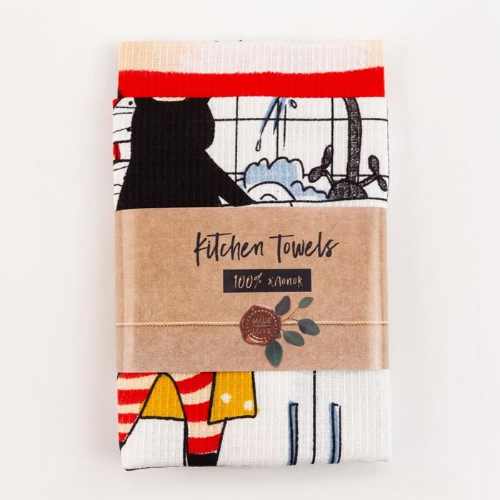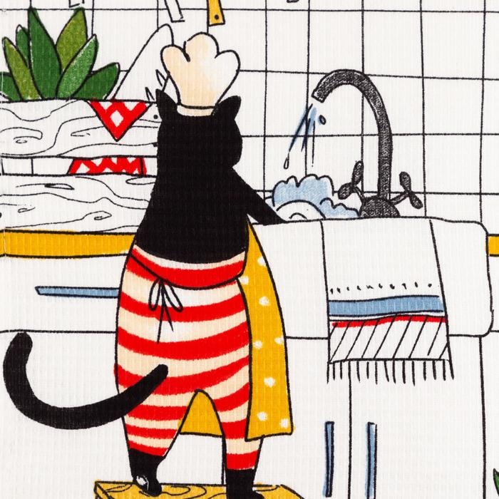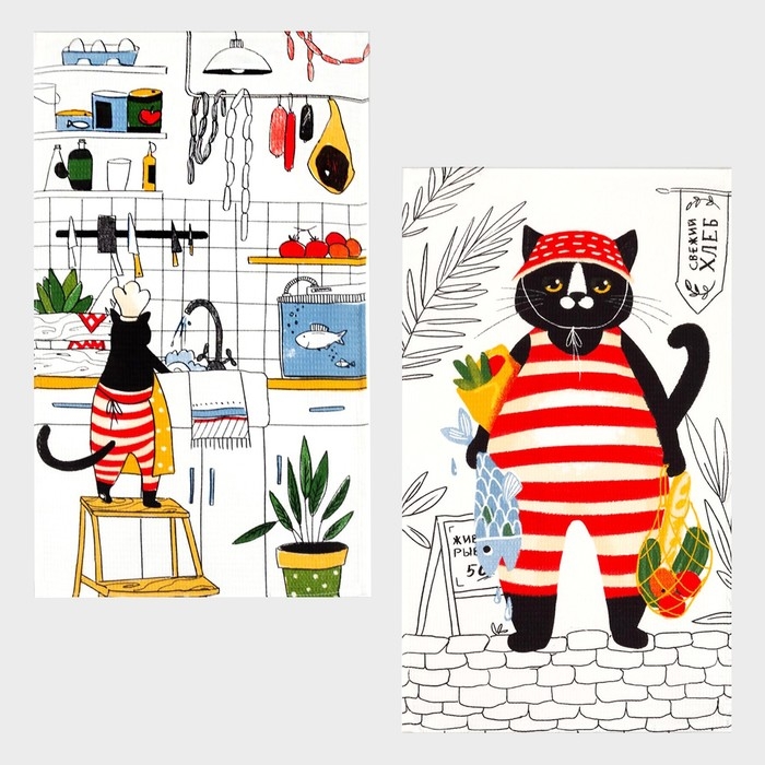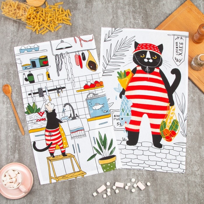 Набор кухонных полотенец Доляна «Котик на кухне» 35х60см-2шт, 100% хл
