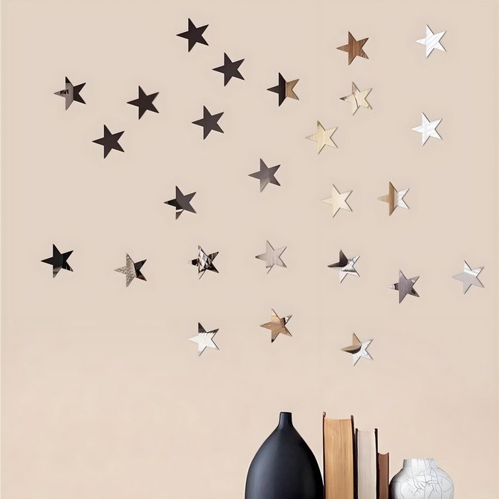 Добавьте нотку волшебства и блеска в ваш интерьер с этим набором зеркальных наклеек в форме звёздочек! Комплект включает 50 элементов размером 5x5 см, изготовленных из высококачественного акрила. Каждая наклейка имеет зеркальную поверхность, которая отражает свет и придает декору дополнительную объемность и глубину.