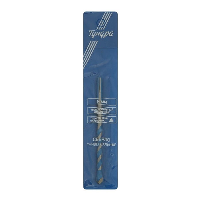 Сверло универсальное ТУНДРА, твердосплавный наконечник, трехгранный хвостовик, 6 х 100 мм